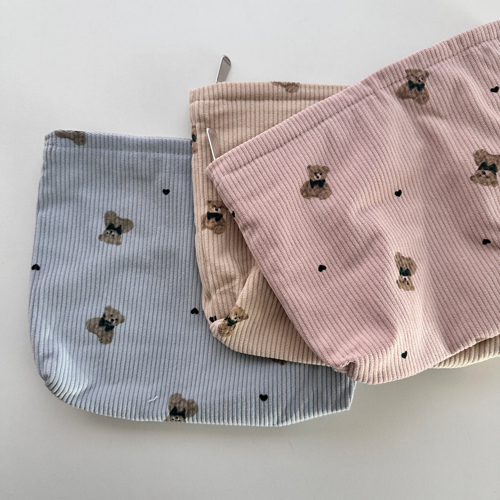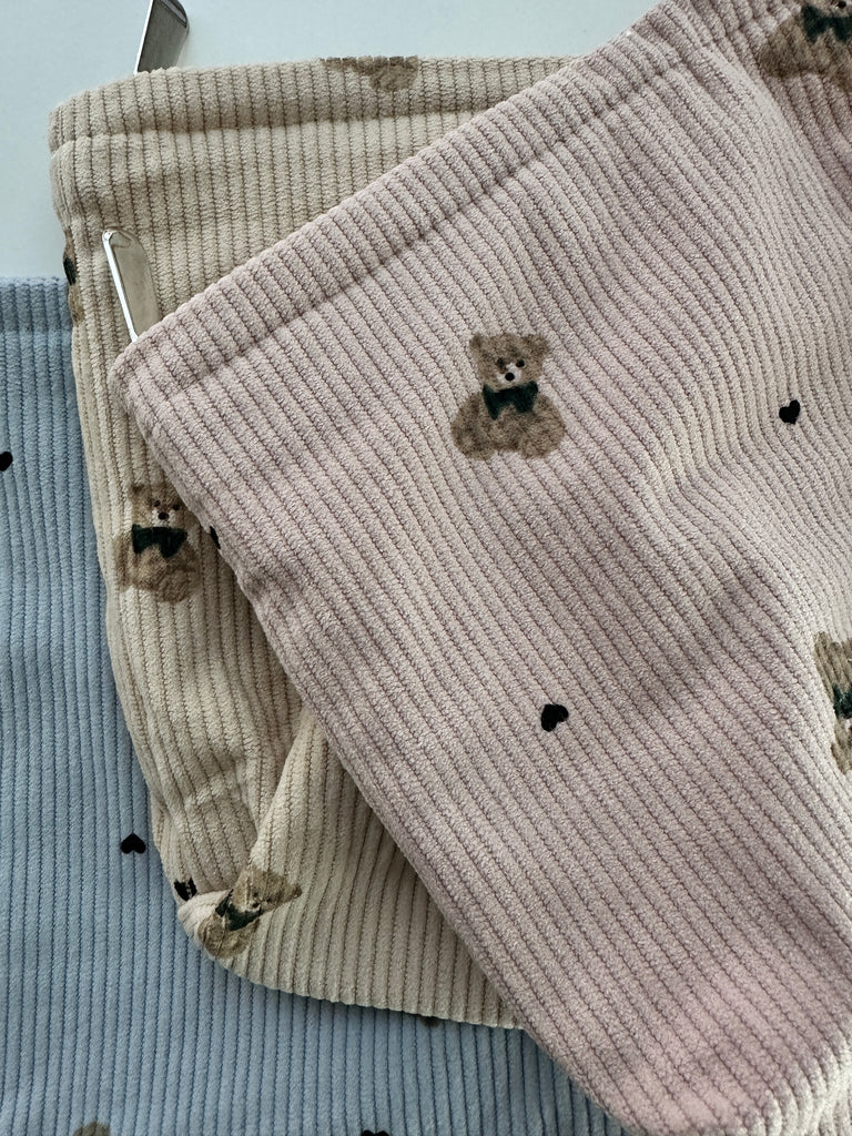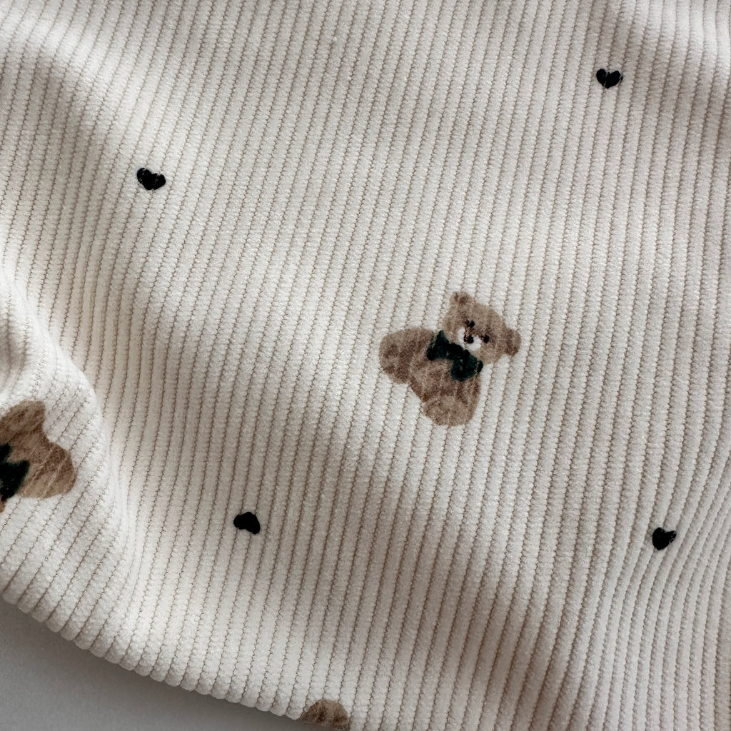 - Soft corduroy material with bear and heart print