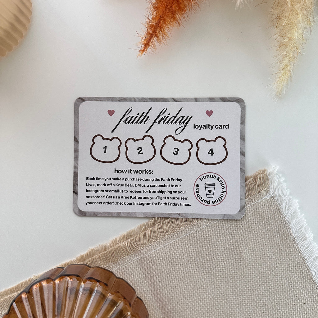- Faith Friday Loyalty Card: reward card for Faith Friday Live Streams*