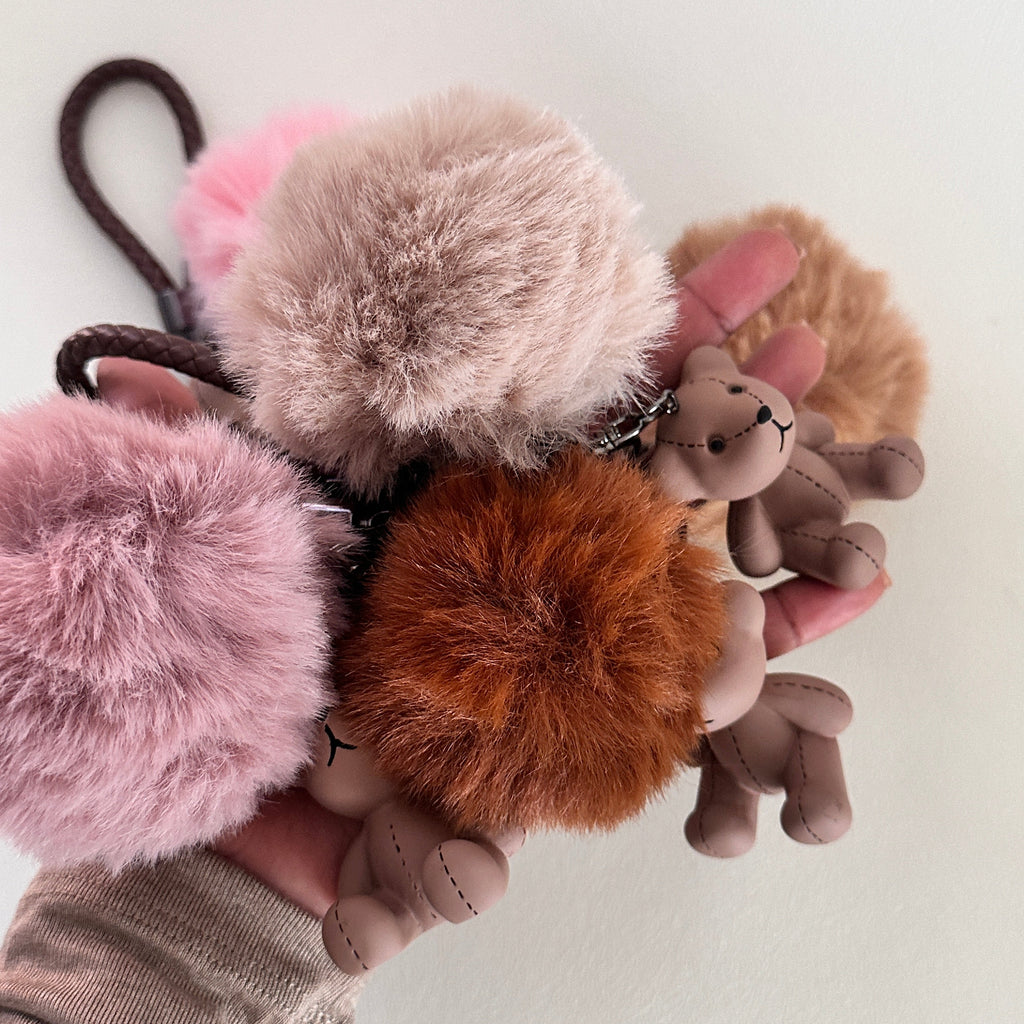 - Bear keychain: teddy bear keychain with hook, key ring, and poof (color chosen at random)