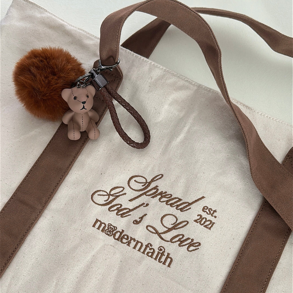 - Modern Faith Tote : large capacity canvas tote bag, 21in x 17in x 6in, custom embroidered design, side pocket and zipper closure
